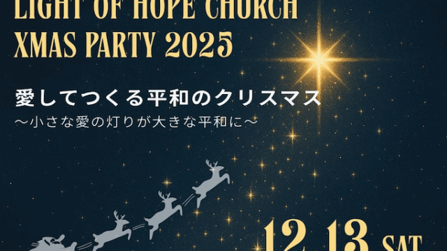 Activity 活動報告 教会活動や主催イベントの記録です! 2025.11.01 ⛪️Light of Hope Church⛪️🥳X’mas partyのお知らせ🥳 クリスマス クリスマス 2025.11.01 Welcome Workshop ⭐クリスマスリース作り♪開催! ウェルカム礼拝 ウェルカム礼拝 2025.09.04 【イベント告知】🌾💛Heart Harvest Festival 2025🧡🌾 Some-well Meets Some-well Meets 2025.08.31 「平和のいっぽ ~和睦~」OPEN CHURCH ~ウェルカム礼拝~ ウェルカム礼拝 ウェルカム礼拝 2025.08.23 8月ウォーキングゴミ拾い@渋谷 ボランティア ボランティア 2025.07.26 7月ウォーキングゴミ拾い@自由が丘 ボランティア ボランティア 2025.06.28 BLUE SANTAごみ拾い2025 プレイベント@SHIBUYAに参加しました! ボランティア ボランティア 2025.05.11 「母の日 アートワークショップ」OPEN CHURCH ~ウェルカムイベント~ ウェルカム礼拝 ウェルカム礼拝 2025.04.19 音育!楽器体験 開催!Some-well Meets Kids Some-well Meets Some-well Meets 2025.03.30 聖書から学ぶ知恵「新しく生きよう」 OPEN CHURCH ~ウェルカム礼拝~ ウェルカム礼拝 ウェルカム礼拝 2025.03.22 サッカー教室開催!Some-well Meets Kids Some-well Meets Some-well Meets 2025.03.08 「姿勢」を制する者は「生活」を制す!Some-well Meets Some-well Meets Some-well Meets 1 2 3 4 >>