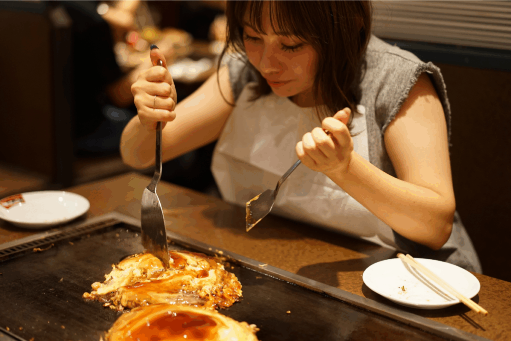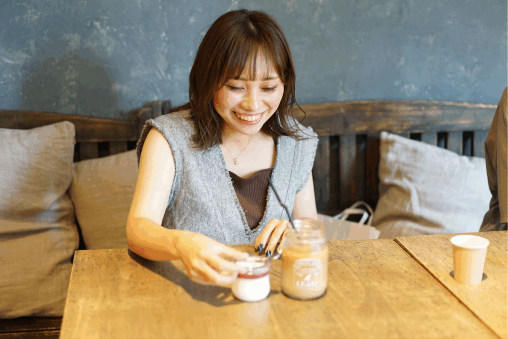 おしゃれカフェでまったりインタビューをし、都会の中の自然で過ごしたあと、お好み焼きを食べました☆